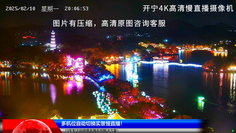第四步,做好昼夜场景衔接,覆盖 “全时段”。白天直播地标日间风貌与打卡人流,傍晚切换至夜间特色场景:比如重庆洪崖洞的灯光亮灯过程、武汉江滩地标建筑的夜间投影秀。开宁慢直播设备支持低光环境拍摄,即便夜色中,也能清晰呈现灯光映照下的建筑轮廓、夜间市集的热闹氛围,满足观众白天 “云打卡”、晚上 “云赏灯” 的需求。