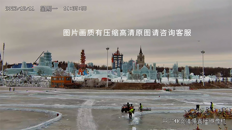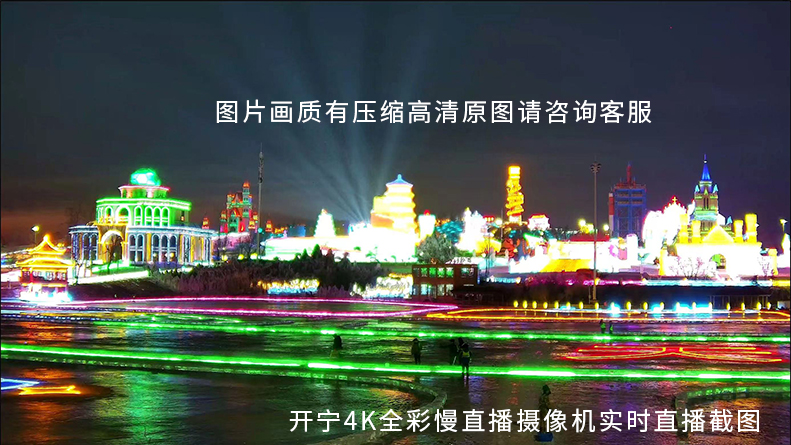 东北哈尔滨冰雪大世界使用开宁慢直播设备实时直播冰雕