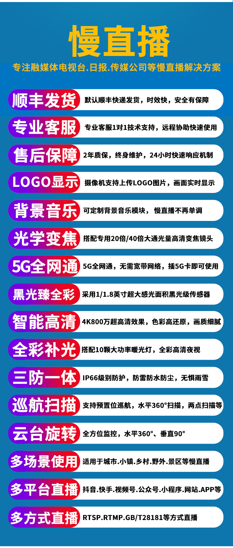 2、内置智能5G模块,没有宽带网络的地方也能实现实时慢直播;